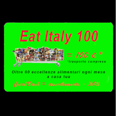 La Eat Italy 100 è una prepagata che dà diritto al possessore all'acquisto di un pacco contenente 60 prodotti alimentari di eccellenza: